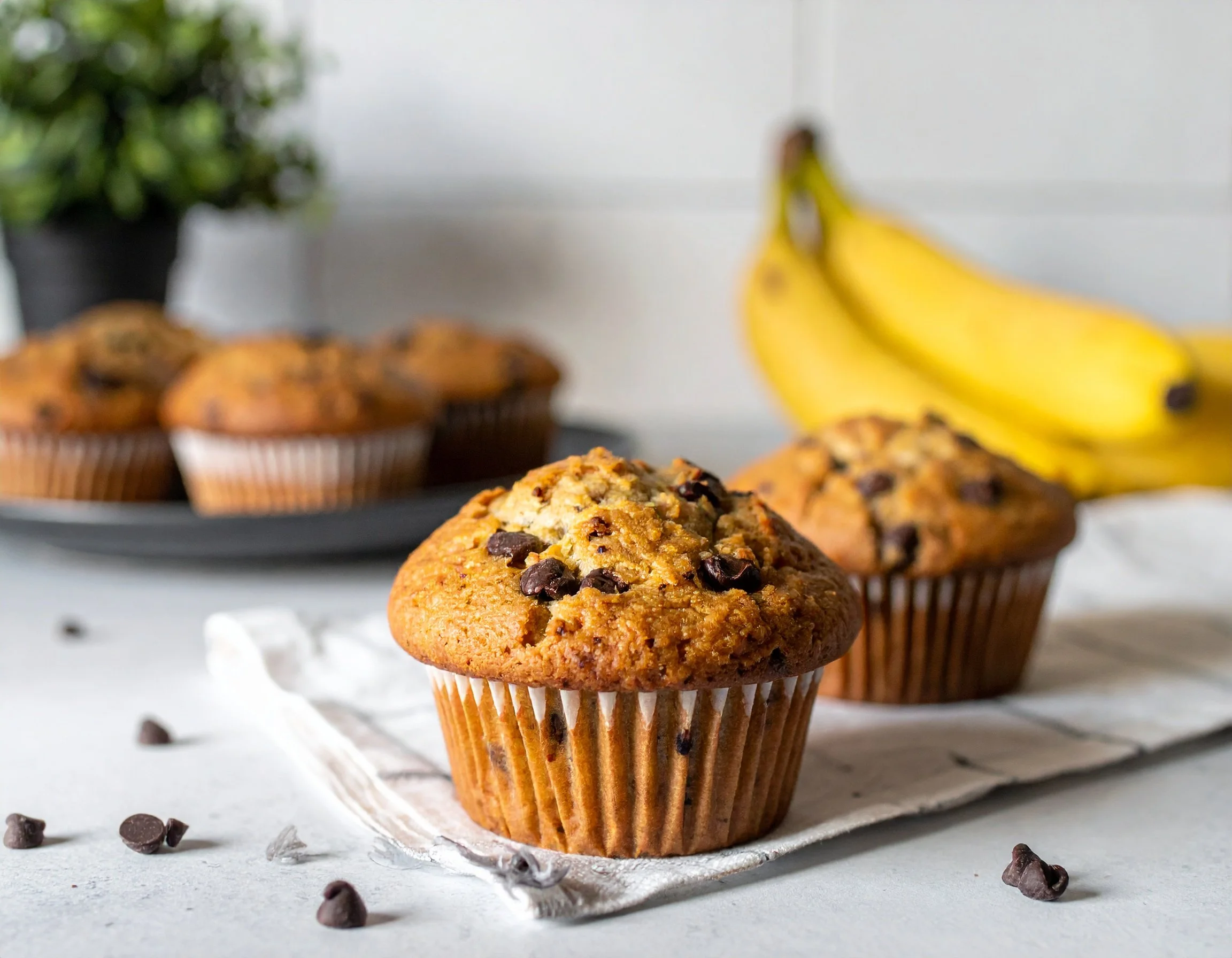 Moist, flavorful banana chocolate chip muffins made with ripe bananas and studded with semisweet chocolate chips—perfect for breakfast, snack time, or lunchboxes.