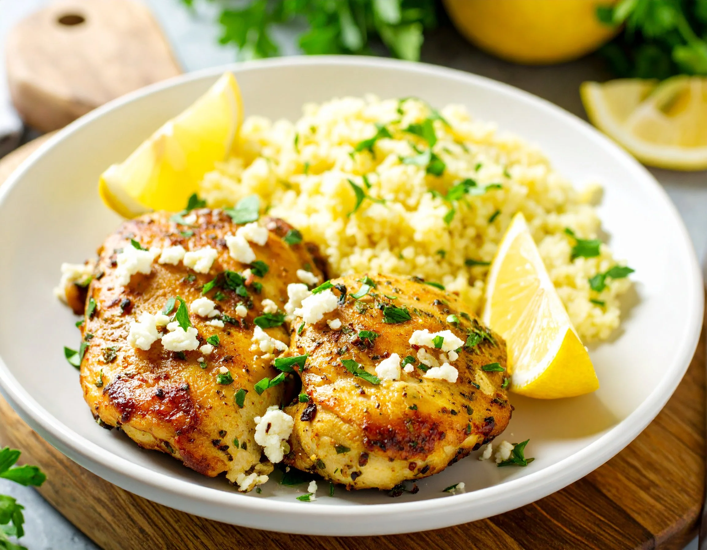 Lemon Herb Chicken Thighs with Couscous and Feta