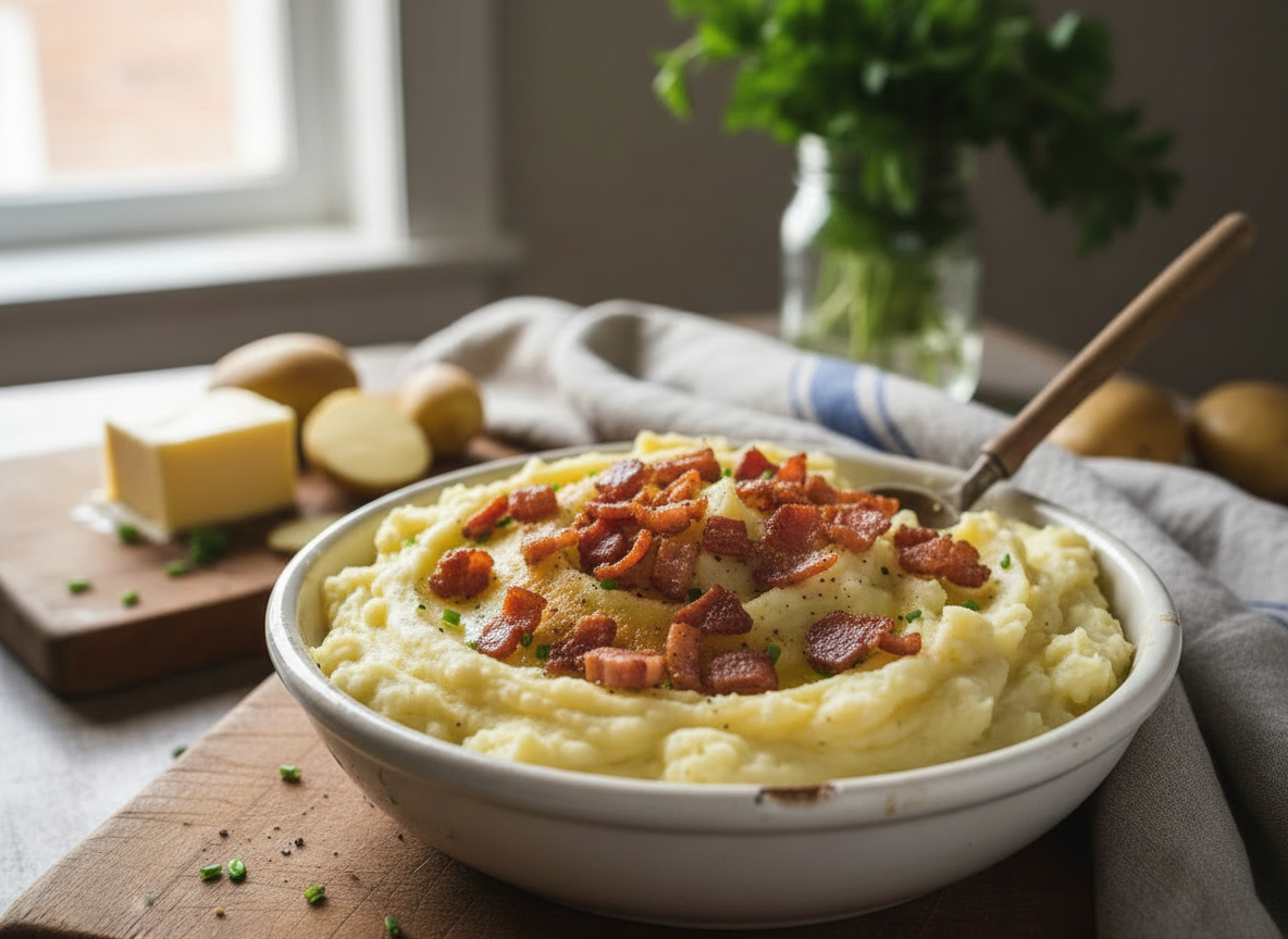 Creamy mashed potatoes meet the rich, salty flavors of classic carbonara in this decadent Thanksgiving side dish. This indulgent, crowd-pleasing recipe highlights pancetta, Parmesan, and silky eggs for an unforgettable holiday upgrade.